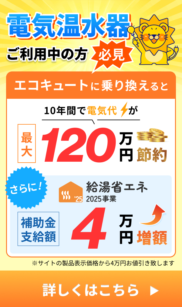 ・給湯省エネ2025事業(100,000円分)を活用時の実質金額です。納期・工事日を今すぐ確認!