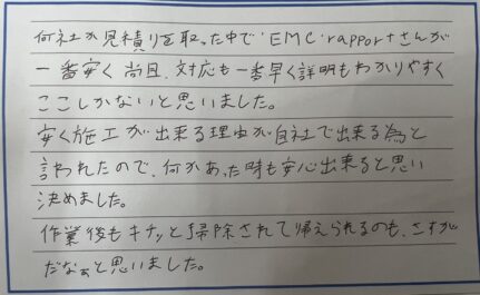 価格・作業・接客全て満足。 補助金の申請も全てお任せ出来る点も安心。